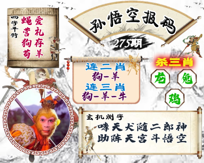274期:【家野两肖】╠家禽+虎猴╣开:狗44准 |